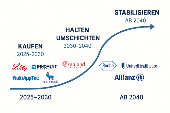 40 % | 🔺 / ⚖️ Wachstum | Kapitalsteigerung, Marktführer | Eli Lilly, Novo Nordisk, Innovent, Innogen, Zealand |